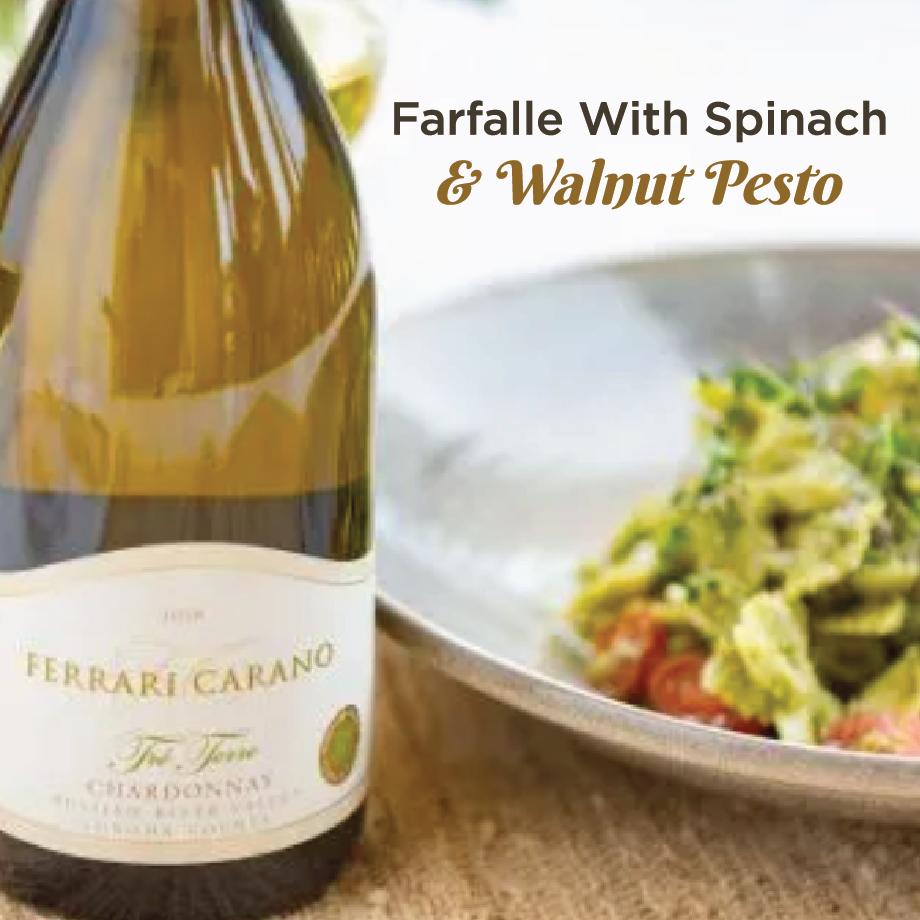 Bring a large pot of salted water to boil. Cook pasta according to directions on box. While the pasta is cooking, combine spinach, walnuts, grated Parmesan, garlic, lemon juice, pepper flake, olive oil and water in a blender or food processor.